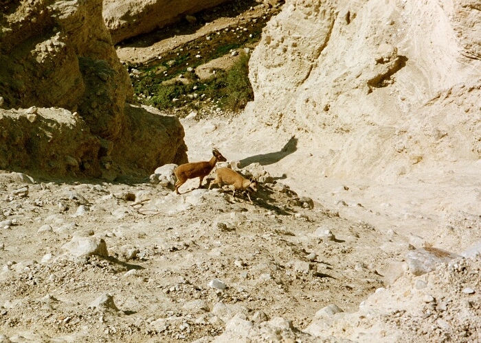 A rock badger staying motionless to avoid detection. The ibex, or wild desert goat, are graceful creatures that can nimbly climb the incredibly steep sides of the En Gedi ravine. Unless moving, or grazing down in the valley near underbrush and grasses they are incredibly hard to spot. The spring at En Gedi is the only water source for miles around. An ibex coming to this spring would be a close image to that conveyed by the Psalmist in chapter 42. These graceful animals will come and drink even when there are people nearby when they are thirsty.