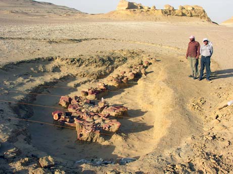 End Notes: 1. The ruins of the ancient city Ugarit were discovered in coastal Syria during the late 1920s. Archaeologists also discovered thousands of clay tablets with an unknown kind of writing on them resembling those used by the ancient Babylonians and Assyrians, known as cuneiform, but the signs were unique, and far fewer in number (30 versus hundreds). As the signs were deciphered it was found that the language was quite close to Hebrew and Aramaic. Ugarit, though an important city at one time, was destroyed by the 13th century B.C. by invading Sea People. This was not long after Israel's return to the Promised Land. The tablets revealed that the people of Ugarit worshipped many gods and goddesses, including Baal and Asherah, both of whom the Israelites are specifically command to not worship. Accounts in the tablets have contributed to scholarly understanding of things referenced in the Bible including better understanding of the ancient Hebrew language. 2. Theological Wordbook of the Old Testament. Copyright © 1980 by The Moody Bible Institute of Chicago. 3. This region is an extremely fertile section of the country; it is part of a 70 by 60 square kilometer basin that was periodically flooded by the Nile thousands of years ago. (As posted on Fair Trade Egypt web site, May 2005) 4. "Philip Gingerich of the University of Michigan excavated the well-preserved skeleton, which is about 40 million years old, in a desert valley known as Wadi Hitan (the Valley of the Whales) south-west of Cairo, spokesperson Karl Bates said. 'His feeling is that it's the most complete - the whole skeleton from stem to stern,' said Bates. The skeleton, which is 18 meters long, could throw light on why there are so many fossilized remains of whales and other ancient sea animals in Wadi Hitan and possibly how the extinct animal swam, he said. Basilosaurus isis is one of the primitive whales known as archaeocetes, which evolved from land mammals and later evolved into the two types of modern whale. But it looks like a giant sea snake and the paleontologists who found the first archaeocetes thought they were reptiles. The fossils include five species of whale, three species of sea cow, two crocodiles, several turtles, a sea snake, and large numbers of fossilised sharks and bony fish." (As posted on web April 20, 2005 by site admin of talkHistory) 5. Photo as published on NationalGeographic.com, April 14, 2005. Quote from associated captioning: "Egypt may not be the first place you'd look for whales, but once upon a time the Wadi Hitan desert was underwater and teeming with the sea giants. The first of the truly gigantic whales, Basilosaurus had the serpentine shape of a sea monster and short, sharp teeth for hunting sharks and other prey. Unlike today's whales, it had no blowhole-the ancient behemoth had to raise its head above water to breathe. What's more, Basilosaurus still had the feet it inherited from its land-dwelling ancestors, according to Gingerich, who works for the University of Michigan and is a National Geographic Society grantee."