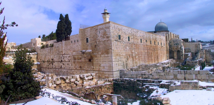 The southwestern end of the temple mount in snow