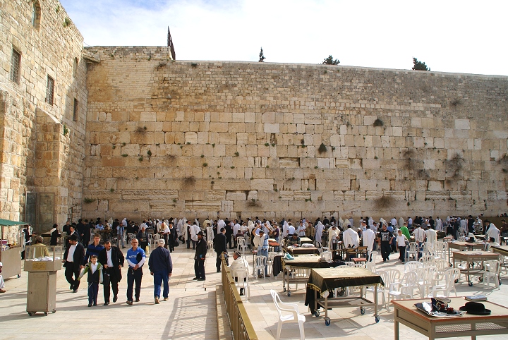 The western wall - men's court - in Jerusalem. Part of foundation wall built by Herod in reconstructing the second temple